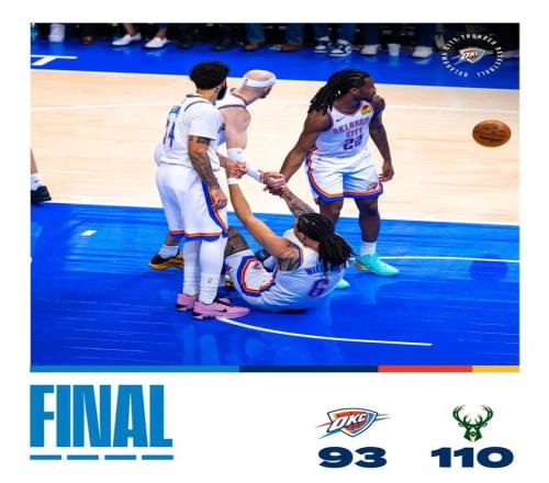 全明星前的最后一个比赛日,雷霆主场93-110不敌雄鹿。