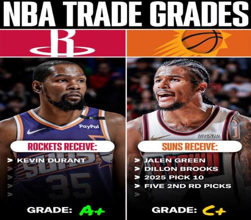 去年休赛期火箭队用杰伦-格林、狄龙、2025年10号签、5个次轮签从太阳换来了凯文-杜兰特,CBS、TA、ESPN多个权威媒体都给出了A-或A的交易评级,可随着赛季的深入这种风评呈现了相反的态势。
