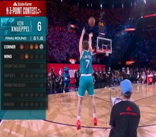 预赛第一场,康神克努佩尔第一个出场就投出27分基本锁定了一个决赛的名额。康神三分大赛的表现依然符合他常规赛的表现,就两个字,稳定。出手就有,完全不怯场。