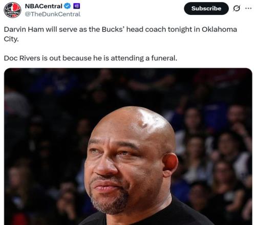 值得一提的是,本场比赛雄鹿队不仅是残阵,甚至连主帅里弗斯也缺席。