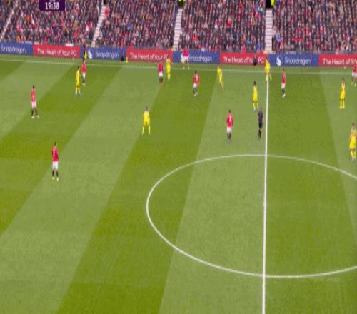 马特乌斯拿球的时候,万-比萨卡前插,带走了姆贝乌莫,而卢克-肖顶完了鲍文,也开始回撤,就在这个时候,两人的跑动方向出现了不同: